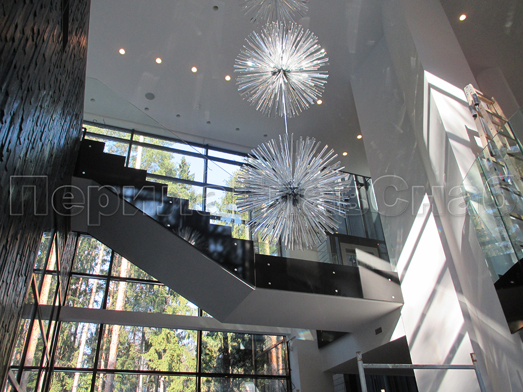 Ограждения лестниц на несущем стекле с подсветкой в Екатеринбурге. Готовые проекты ПерилаГлавСнаб