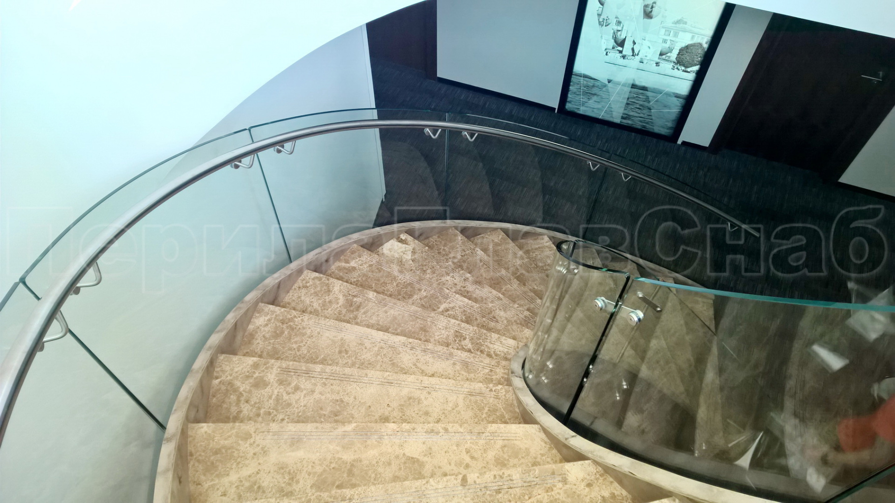 Стеклянные ограждения винтовой лестницы и баллюстрады в Екатеринбурге. Готовые проекты ПерилаГлавСнаб - фото 1