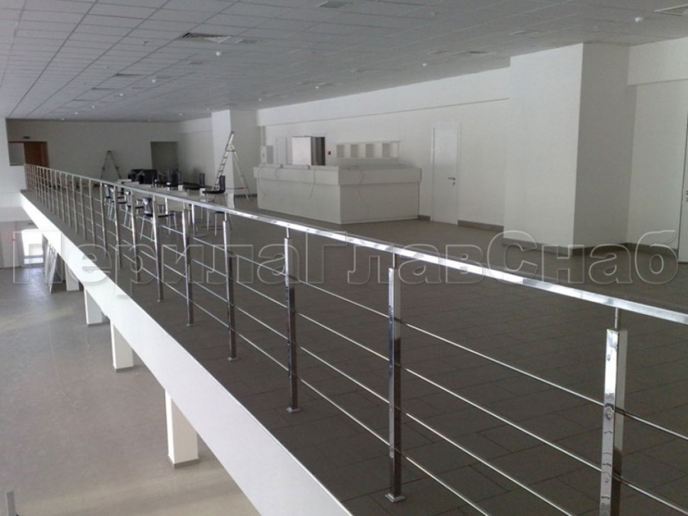 Ограждения из нержавейки. Заполнение из 4х тросиков. Квадратные стойки.