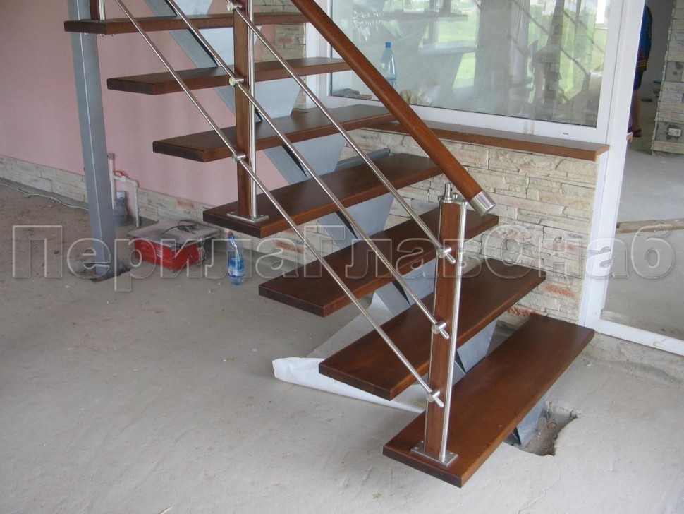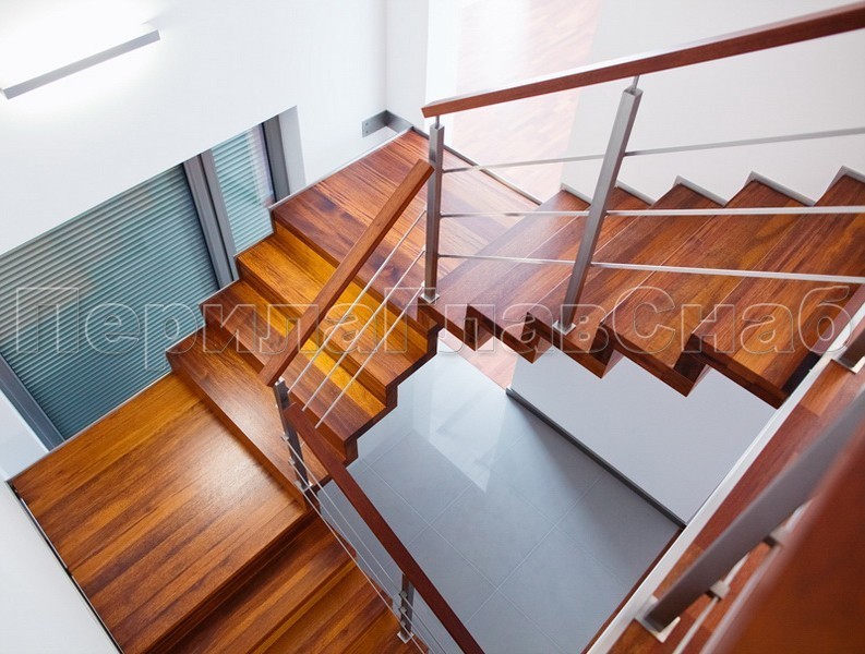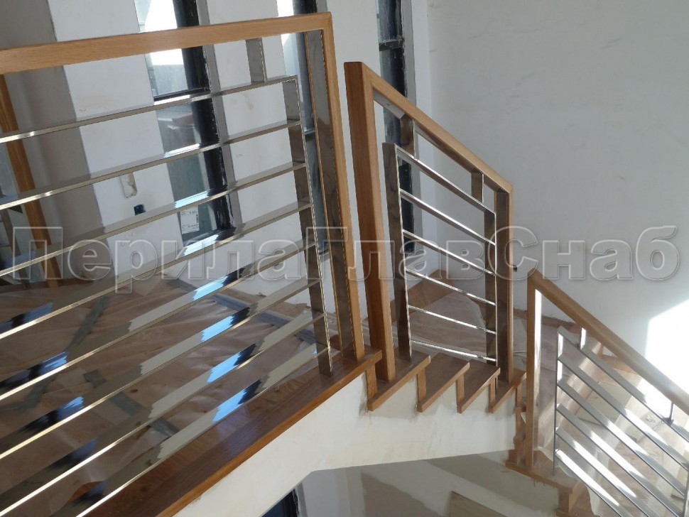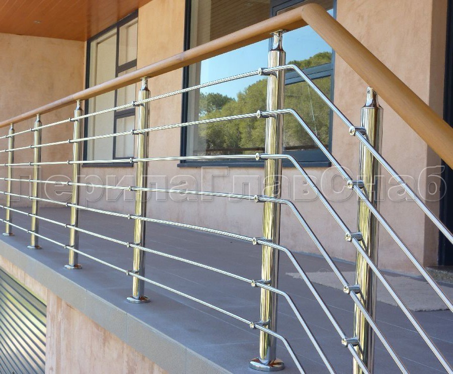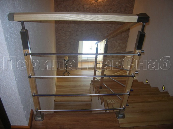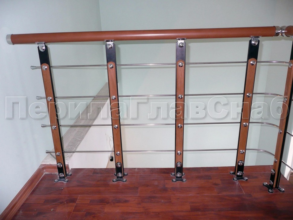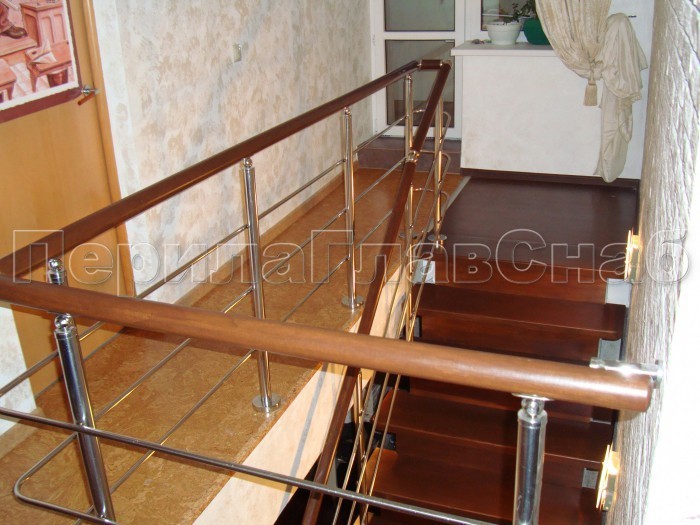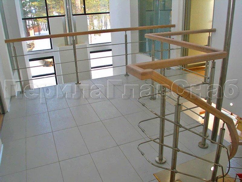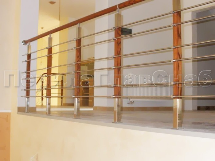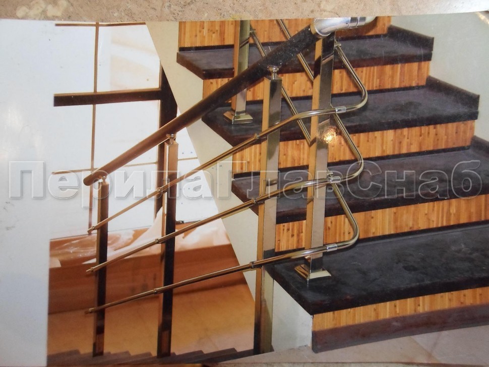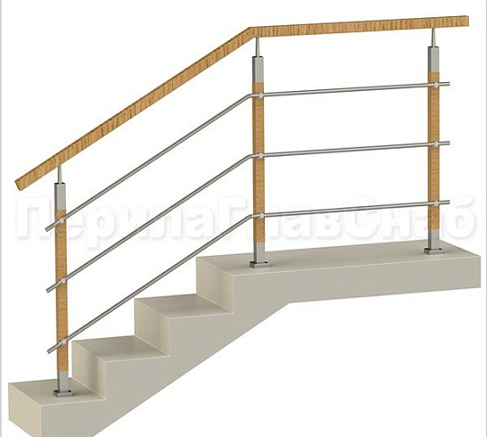 Записаться на встречу Три ригеля на держателях, квадратные деревянные поручень и стойки