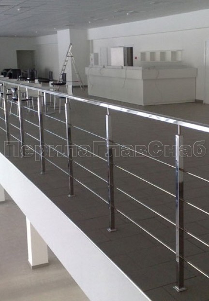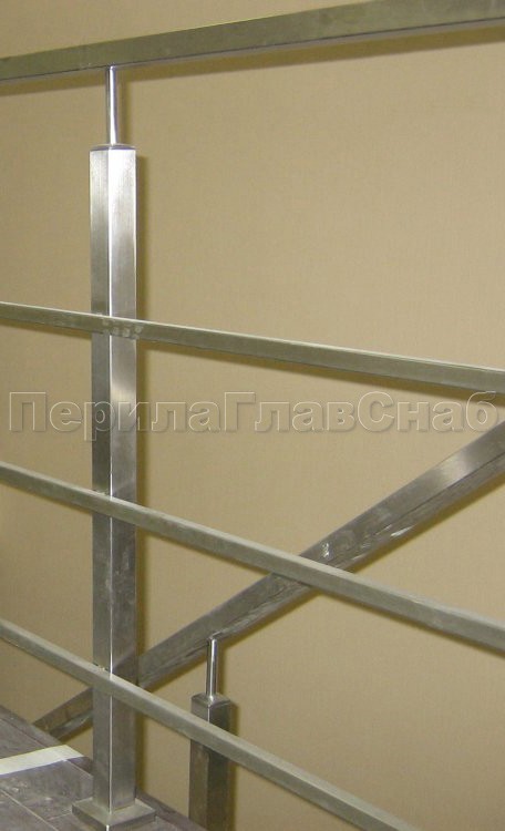 Четыре ригеля на держателях, квадратный поручень и квадратные стойки