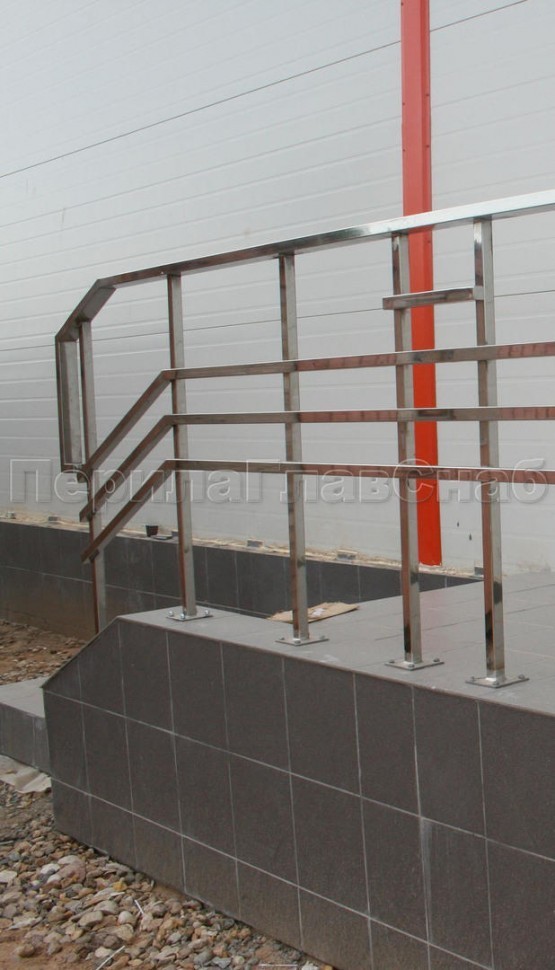 Четыре ригеля на сварке, круглый поручень и квадратные стойки