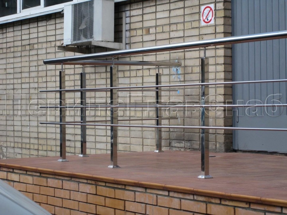 Четыре ригеля на сварке, круглый поручень и квадратные стойки