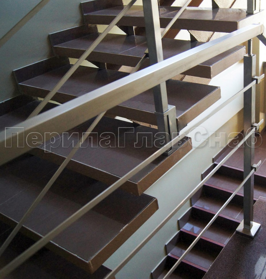 Ограждения с квадратным поручнем со стойками в каждую ступень без ригелей