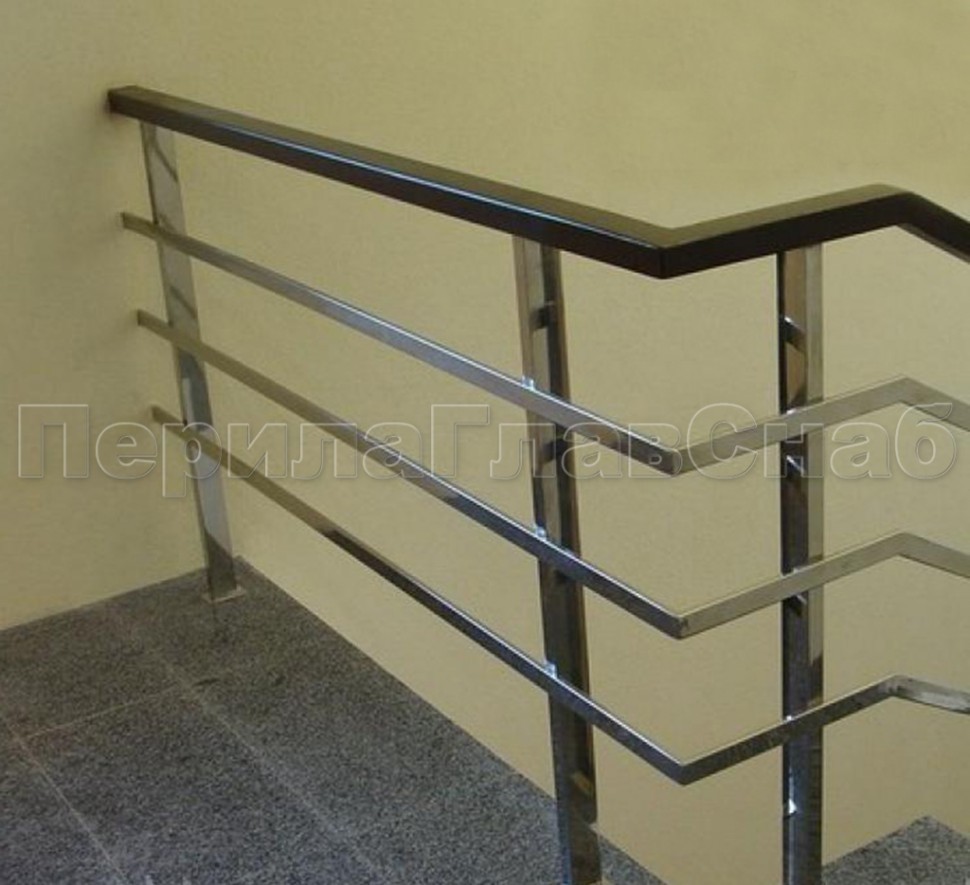 Четыре ригеля на держателях, квадратный поручень и квадратные стойки