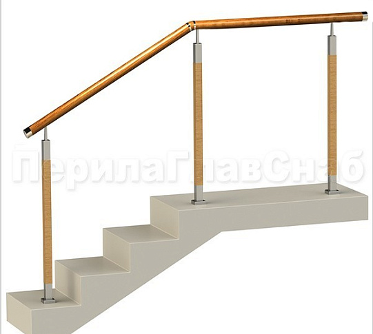 Записаться на встречу Нержавеющие ограждения без ригелей с круглым деревянным поручнем и стойками с деревянными вставками