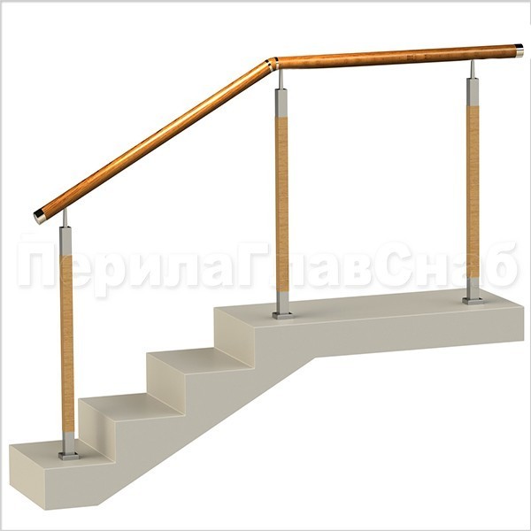 Записаться на встречу Нержавеющие ограждения без ригелей с круглым деревянным поручнем и стойками с деревянными вставками