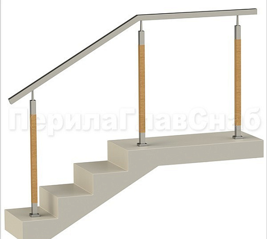 Нержавеющие ограждения без ригелей с круглым поручнем и стойками с деревянными вставками