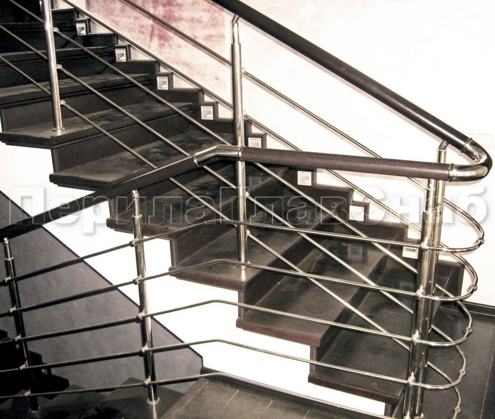 Нержавеющие ограждения без ригелей с круглым поручнем и стойками с деревянными вставками