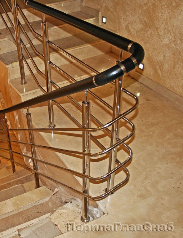 Четыре ригеля на сварке, круглый поручень и квадратные стойки