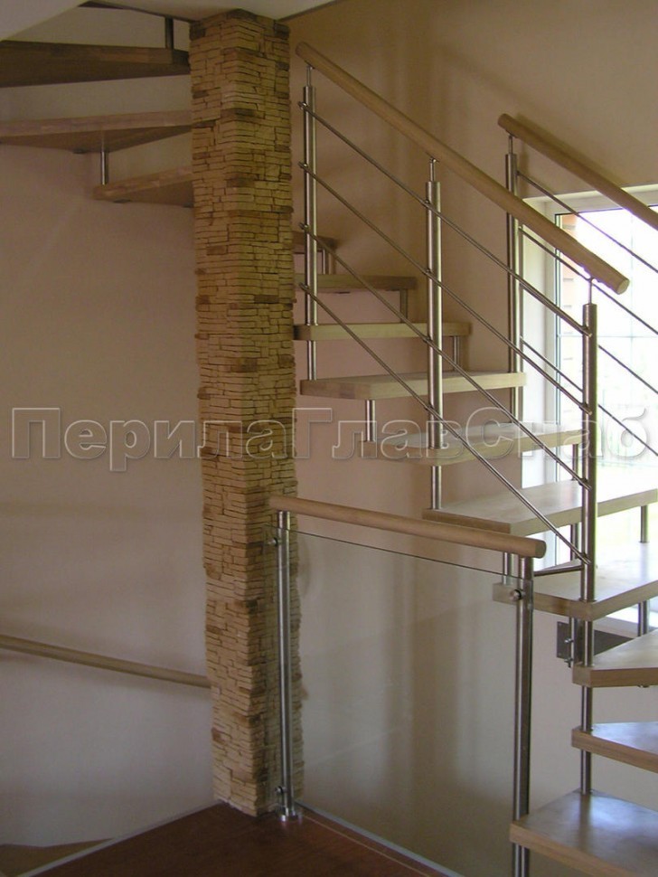 Ограждения с двумя стойками в каждую ступень с деревянным поручнем и без ригелей