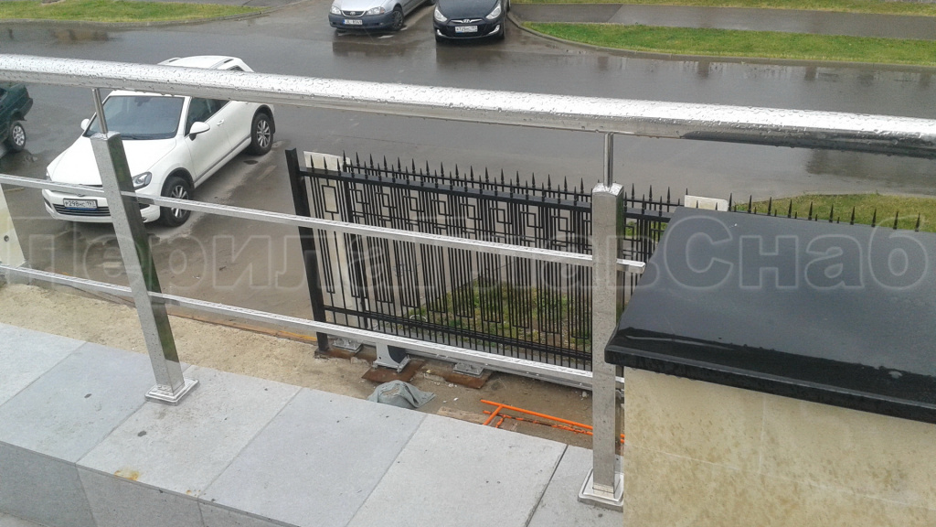 Два ригеля на сварке, квадратный поручень и круглые стойки