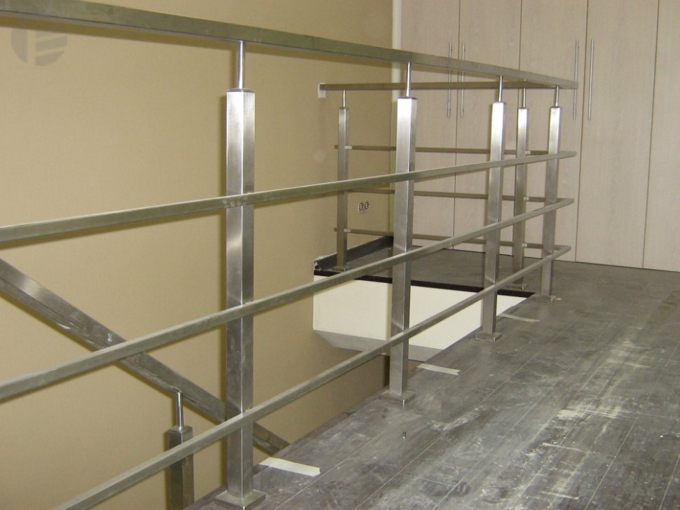 Четыре ригеля на держателях, квадратный поручень и квадратные стойки
