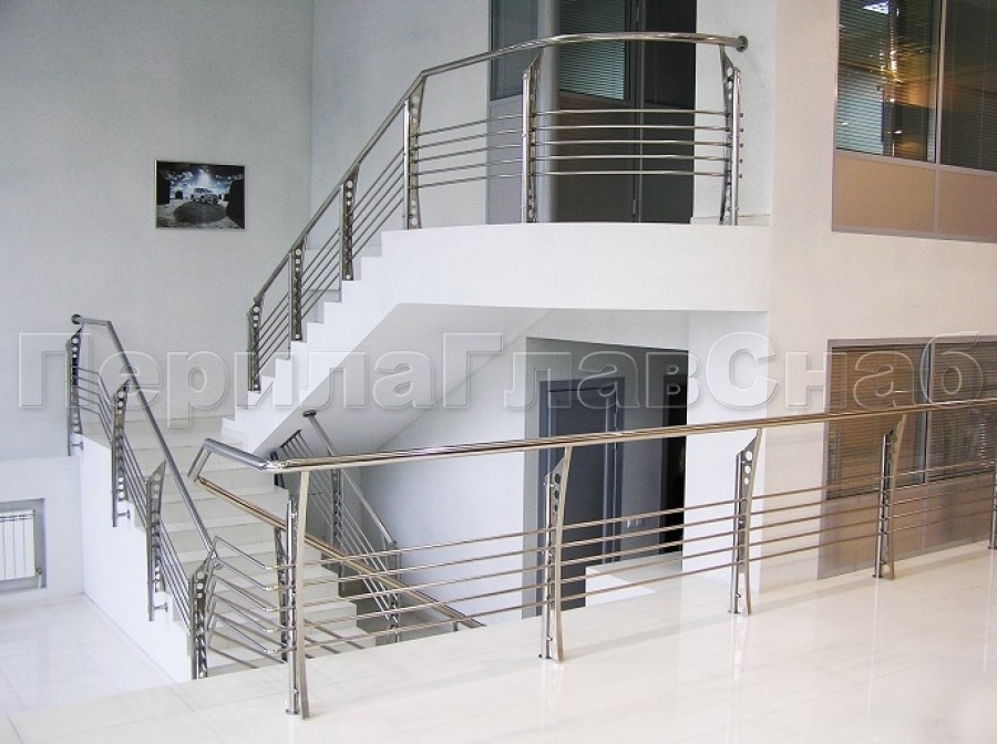 Четыре ригеля на сварке, круглый поручень и квадратные стойки
