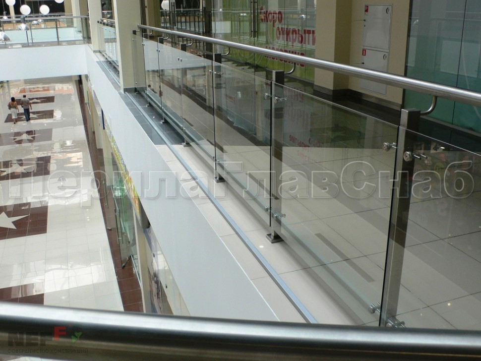 Ограждение кровли на несущем стекле и алюминиевом профиле