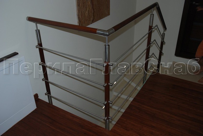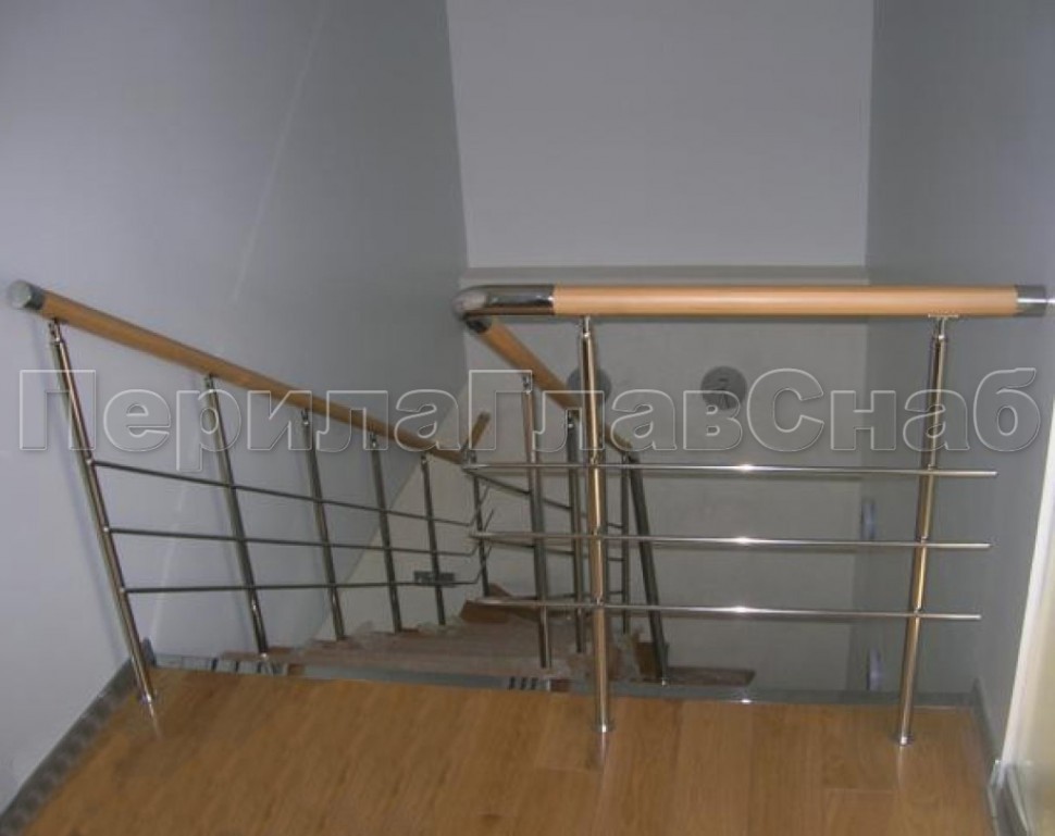 Записаться на встречу Два ригеля на держателях, круглый деревянный поручень и круглые стойки