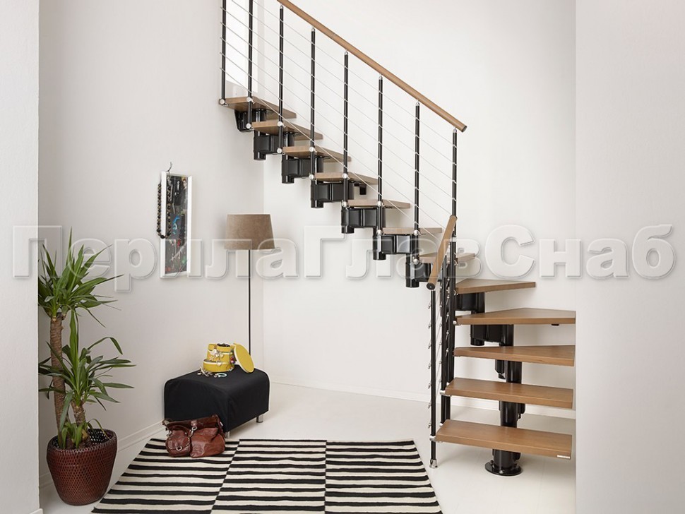 Записаться на встречу Ограждения с двумя стойками в каждую ступень с деревянным поручнем и без ригелей