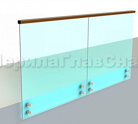 Ограждение с квадратным деревянным поручнем на точечном креплении