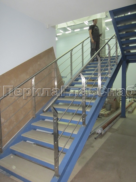 Четыре ригеля на сварке, квадратный поручень и круглые стойки
