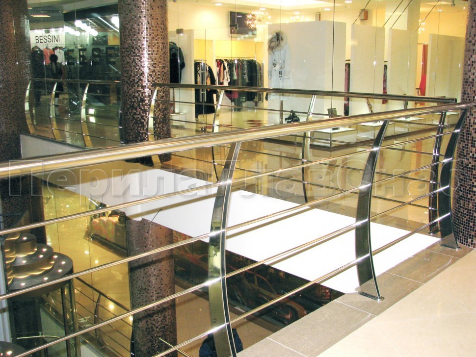 Ограждение с нестандартными нержавеющими стойками и ригельным заполнением
