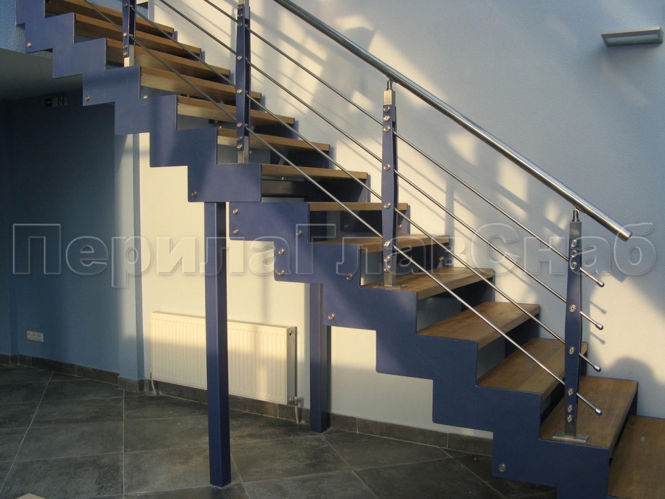 Ограждения с двумя стойками в каждую ступень с деревянным поручнем и без ригелей