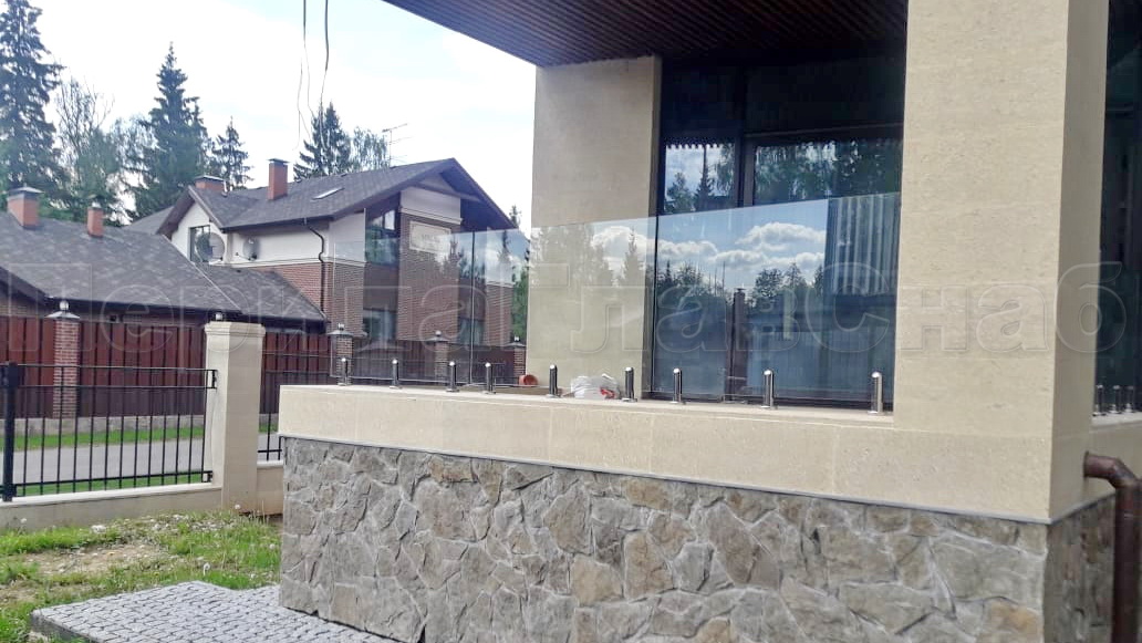Цельностеклянные перила на балконе частного дома в Подмосковье