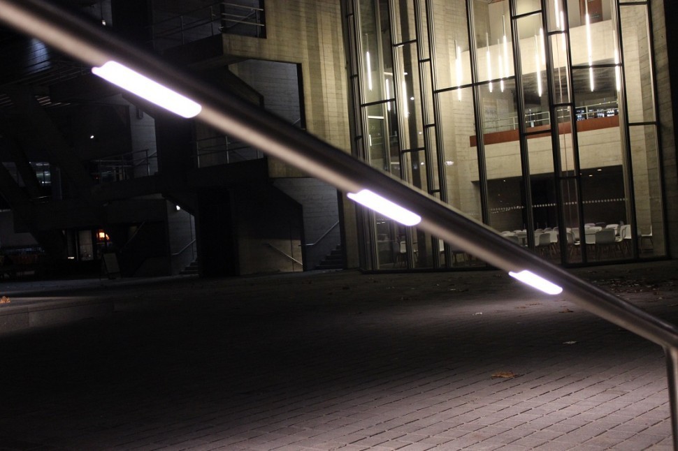 Часто используют подсветку поручня на ограждениях для улицы, для эффектной подсветки проходных участков, а так же для визуального отделения пешеходной и проезжей части.