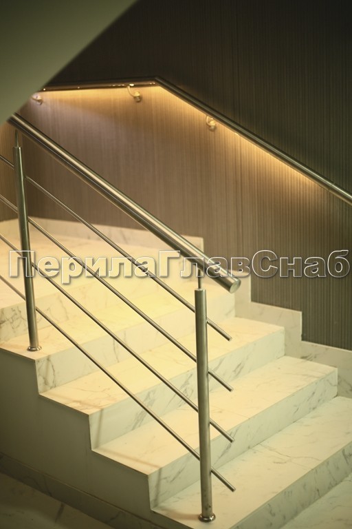 В базовой модели поручня с подсветкой используется полированная сталь, но можно выбрать шлифованную или матированную поверхность типа «сатин».