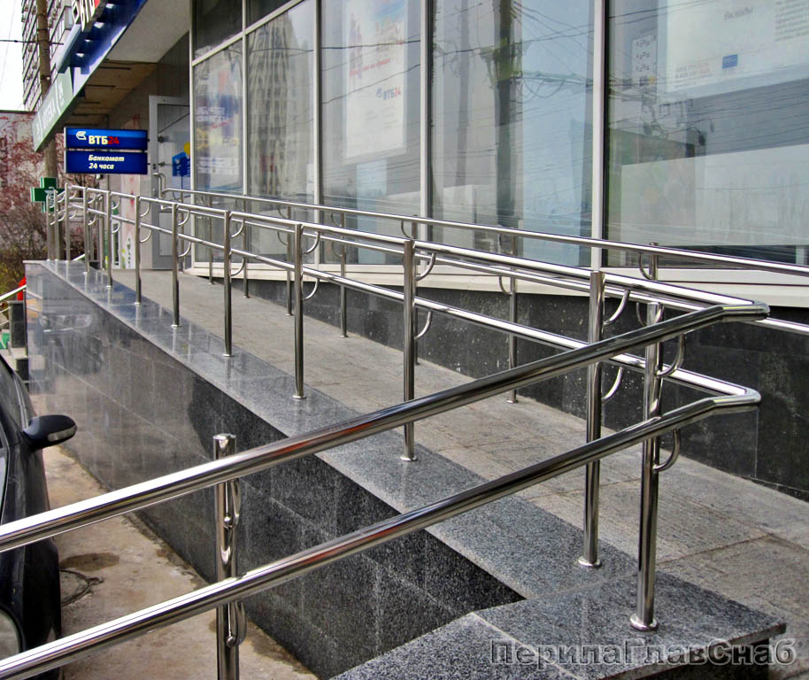 • Опорные перила из нержавейки для инвалидов-колясочников не должны иметь скользкую поверхность. В противном случае за них не будет удобно держаться.