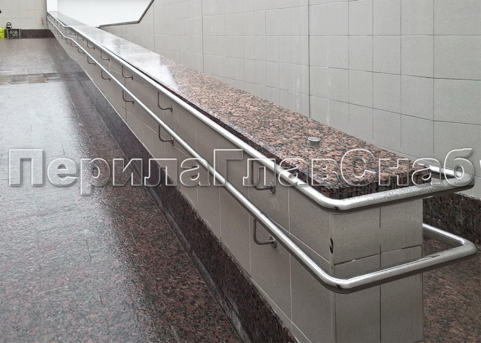 Пристенок для инвалидов крепится на специальных держателях к стене. Частоту установки дежателей, их тип и дизайн вы можете выбрать по вашим требованиям.