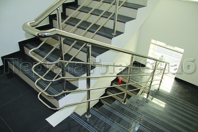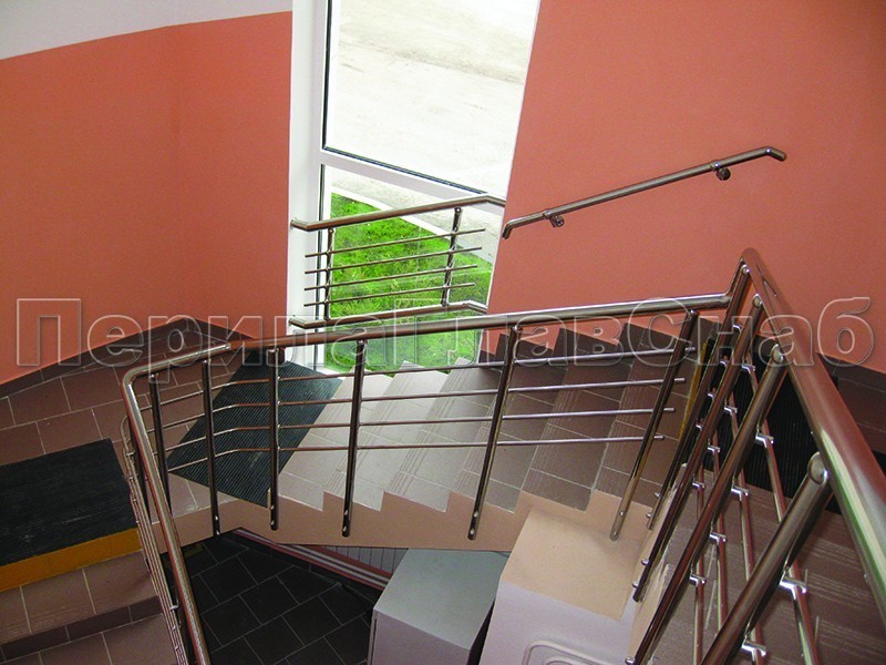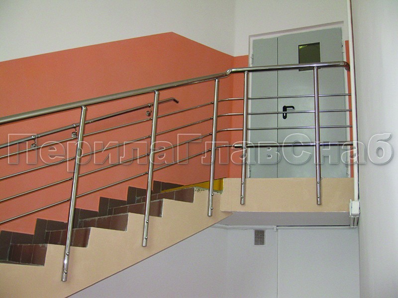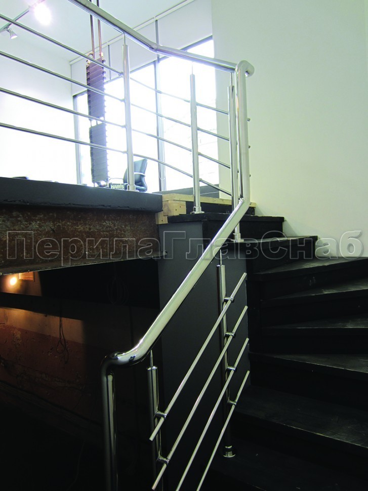 Четыре ригеля на сварке, квадратный поручень и круглые стойки