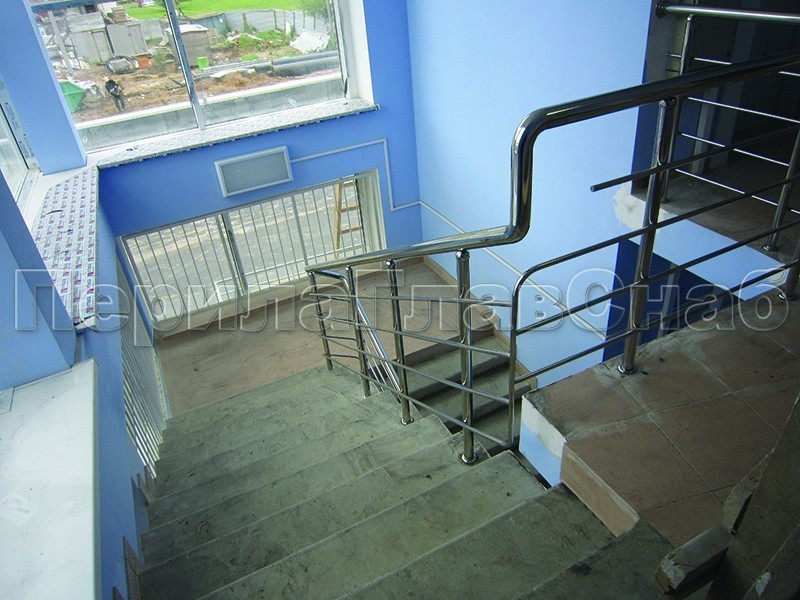 Нержавеющие ограждения для школ и детских садов с вертикальным заполнением “Частокол” - вариант №1 для крыльца