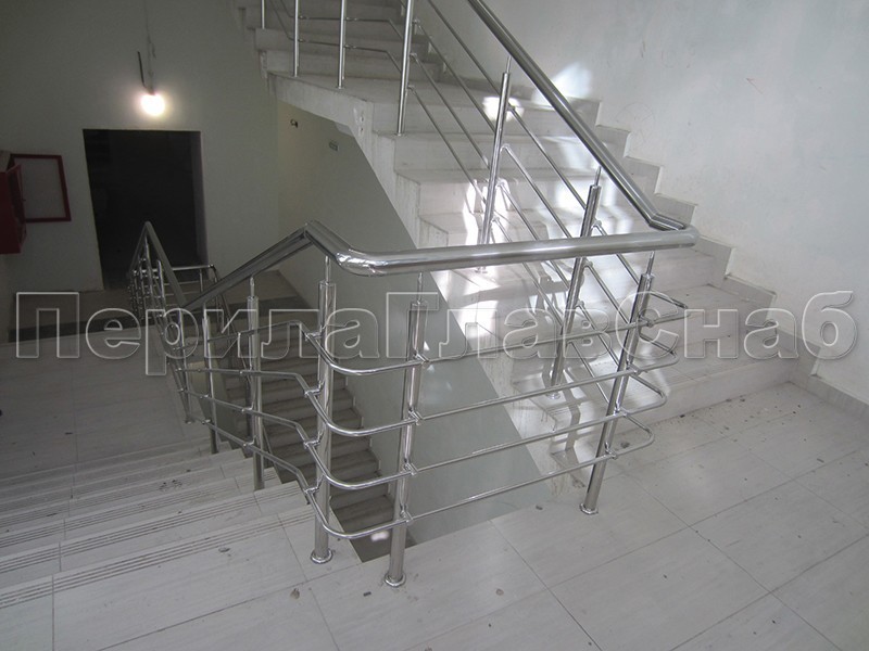 Четыре ригеля на держателях, круглый поручень и квадратные стойки