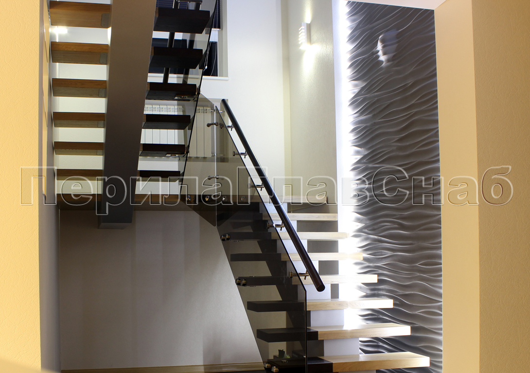 Ограждение с деревянным поручнем на выносе на точечном креплении на лестнице в Екатеринбурге. Готовые проекты ПерилаГлавСнаб - фото 1 Ограждение с деревянным поручнем на выносе на точечном креплении на лестнице в Екатеринбурге. Готовые проекты ПерилаГлавСнаб - фото 2