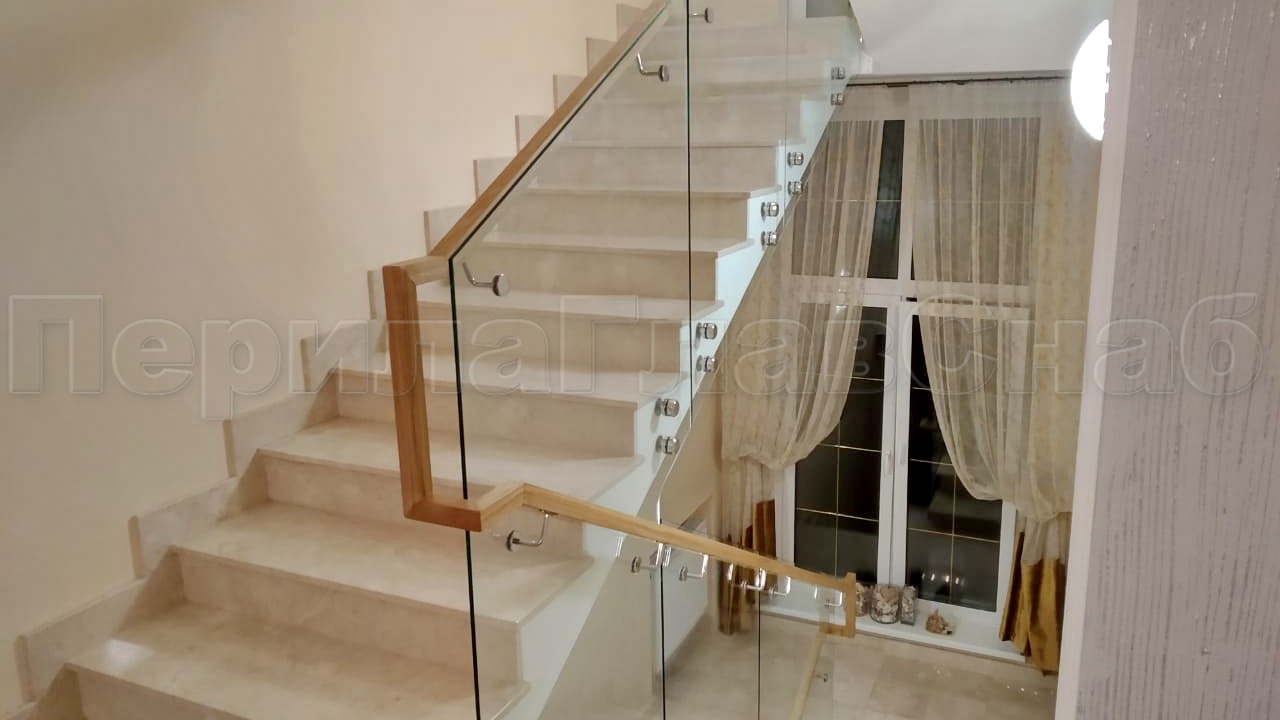 Ограждение с деревянным поручнем на точечном креплении на лестнице в Екатеринбурге. Готовые проекты ПерилаГлавСнаб - фото 1 Ограждение с деревянным поручнем на точечном креплении на лестнице в Екатеринбурге. Готовые проекты ПерилаГлавСнаб - фото 2