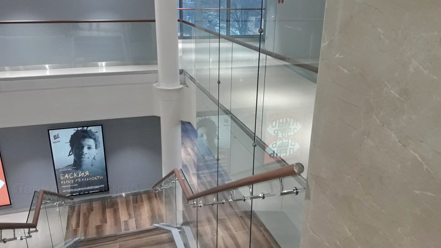 Ограждение без поручня на точечном креплении на лестнице в Екатеринбурге. Готовые проекты ПерилаГлавСнаб