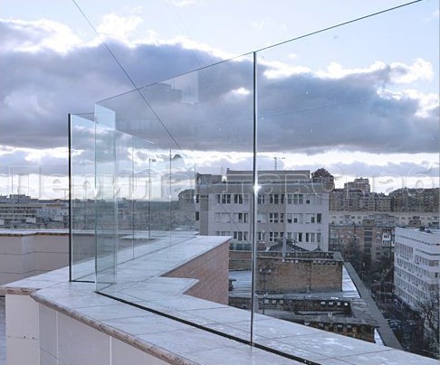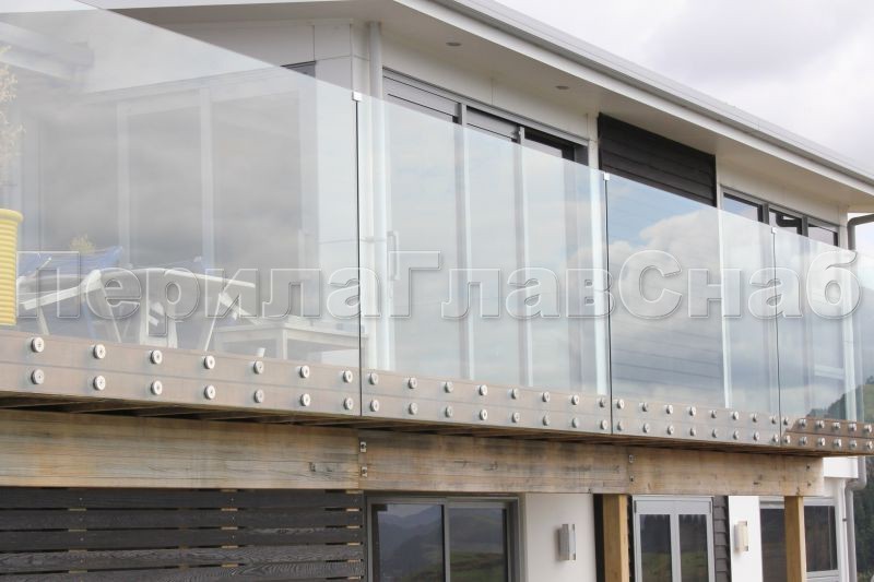 Ограждение с профильным поручнем с пазом на точечном креплении