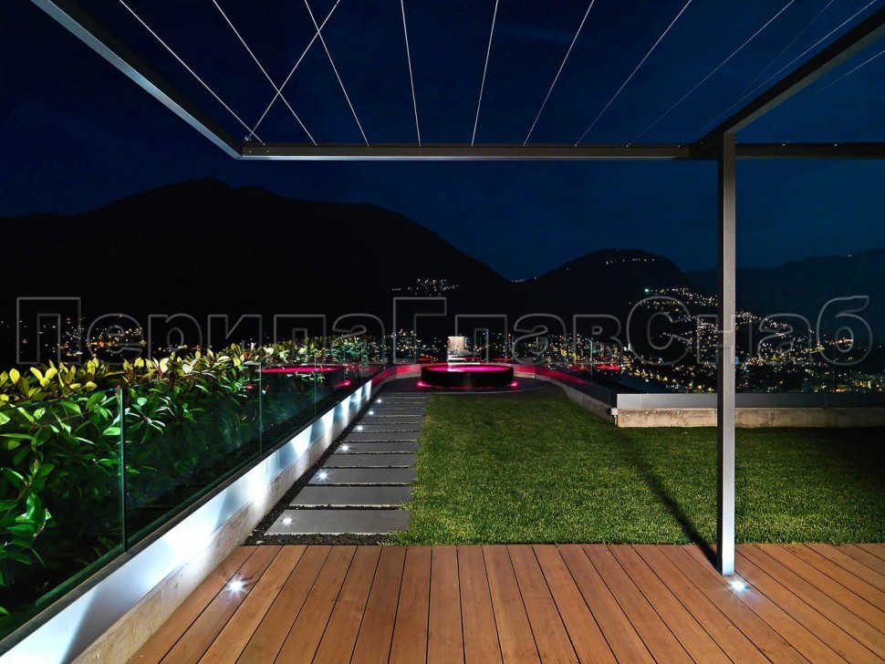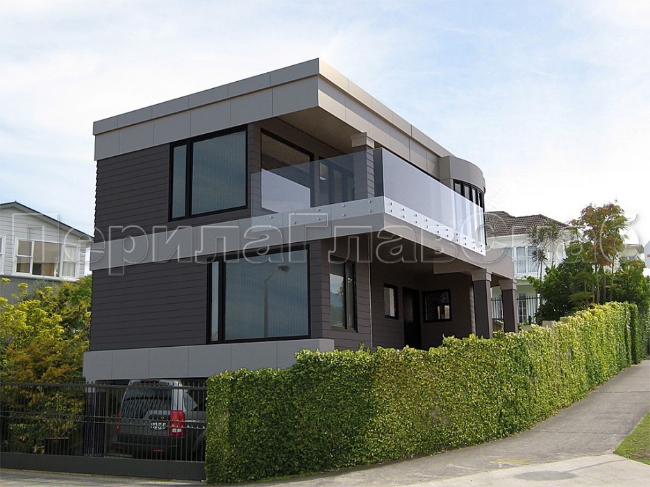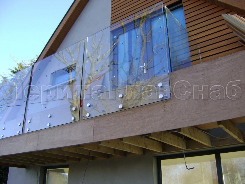 Ограждение с деревянным поручнем на выносе на точечном креплении