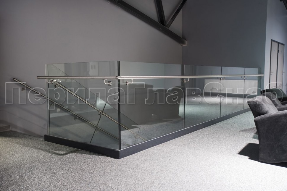 Ограждение без поручня на профиле на лестнице
