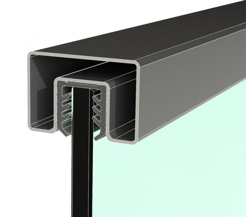 Ограждение с поручнем с пазом в зажимном профиле на лестнице