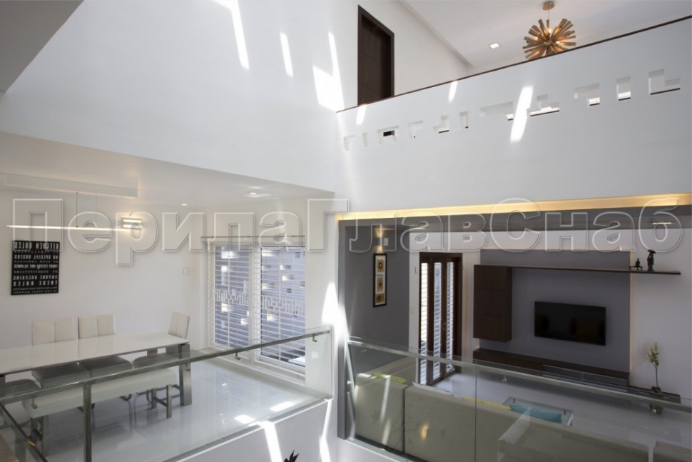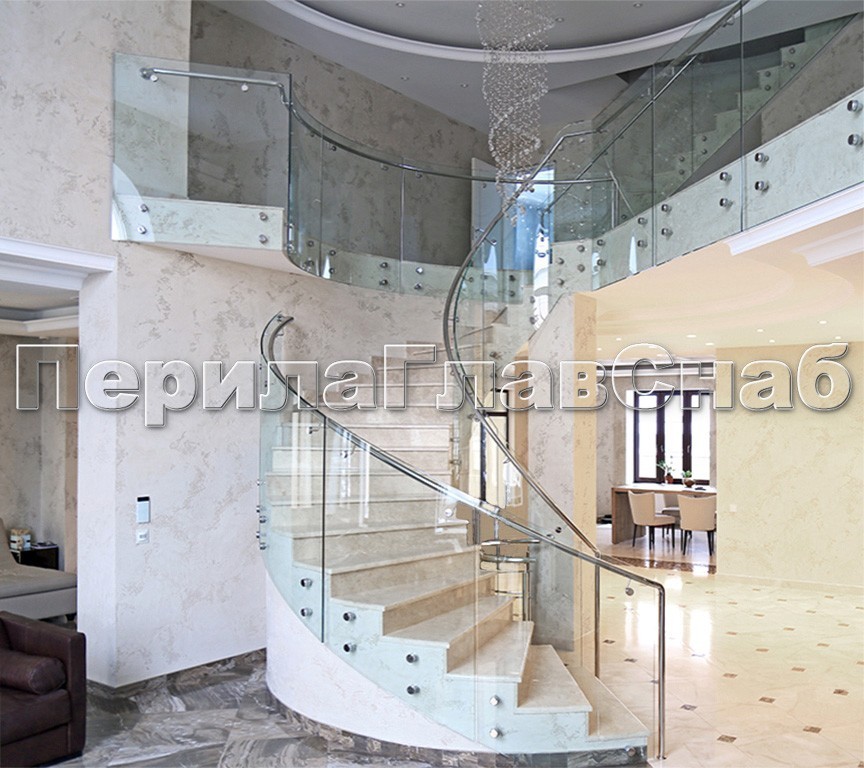Ограждение без поручня на точечном креплении на лестнице