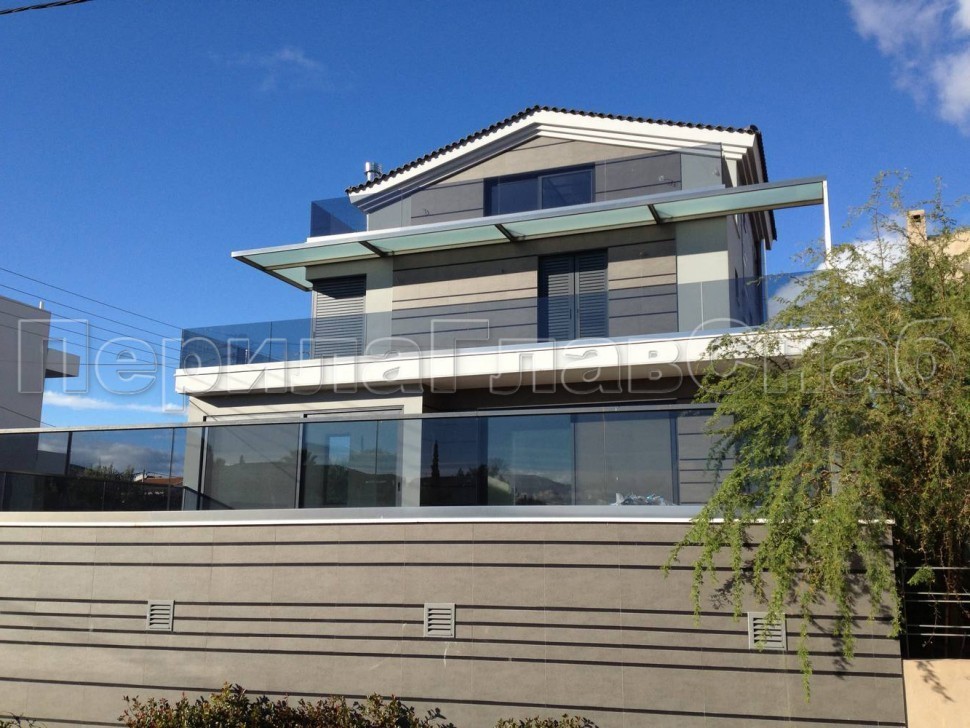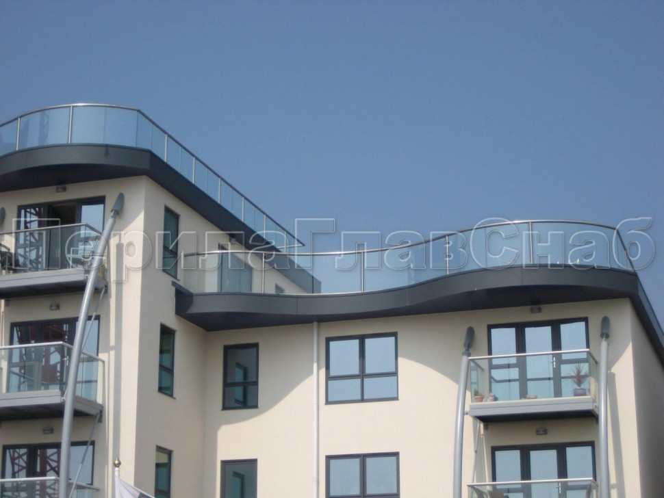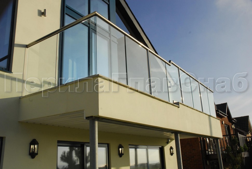 Ограждение с профильным поручнем с пазом на точечном креплении