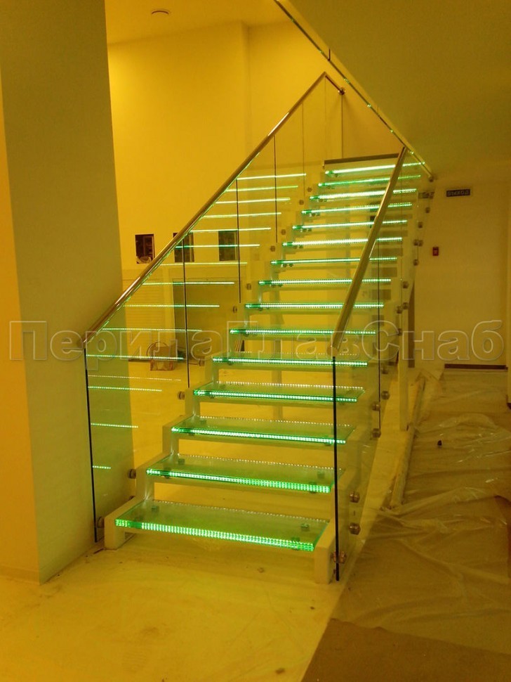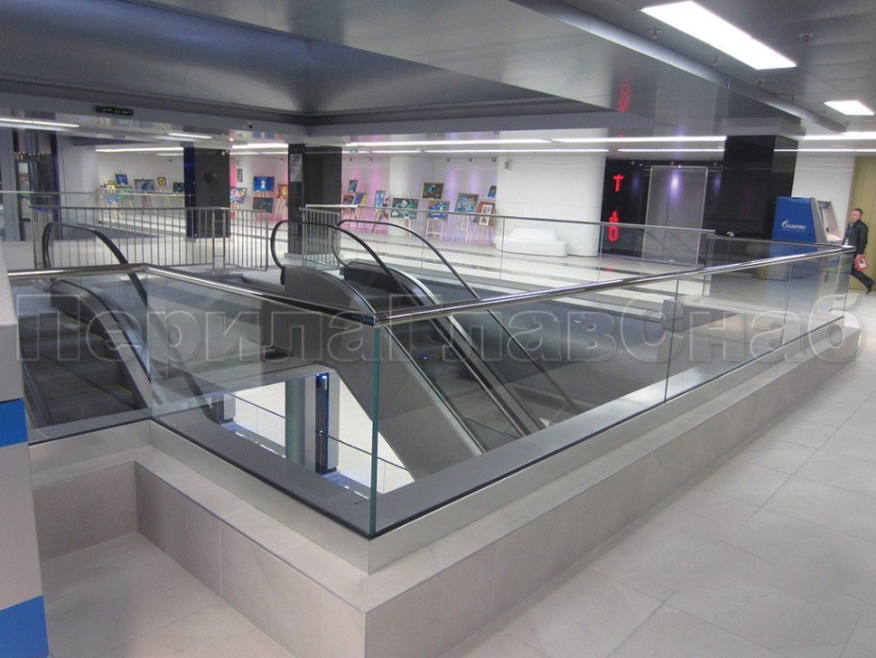 Ограждение с поручнем на выносе в зажимном профиле на лестнице