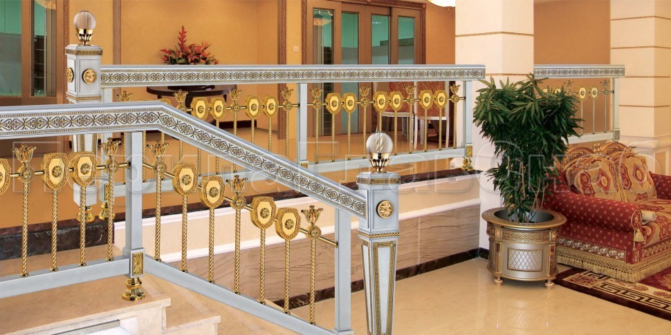 Ограждение с профильным поручнем с пазом в зажимном профиле на лестнице