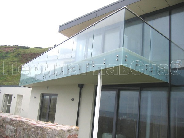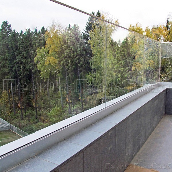 Ограждение с профильным поручнем с пазом на точечном креплении