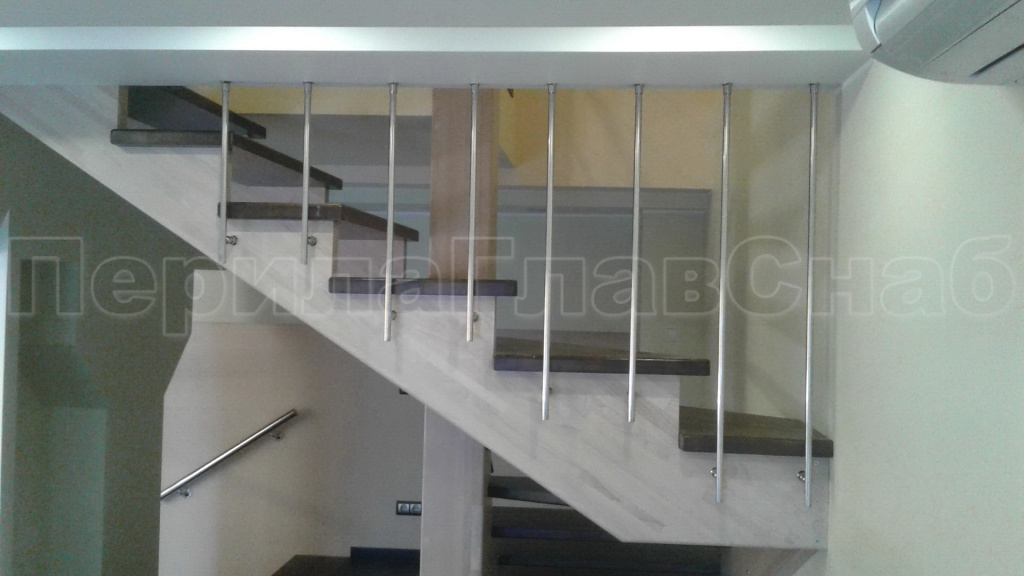 Нержавеющие ограждения с вертикальным заполнением 'частокол' - вариант №4 в Екатеринбурге. Готовые проекты ПерилаГлавСнаб
