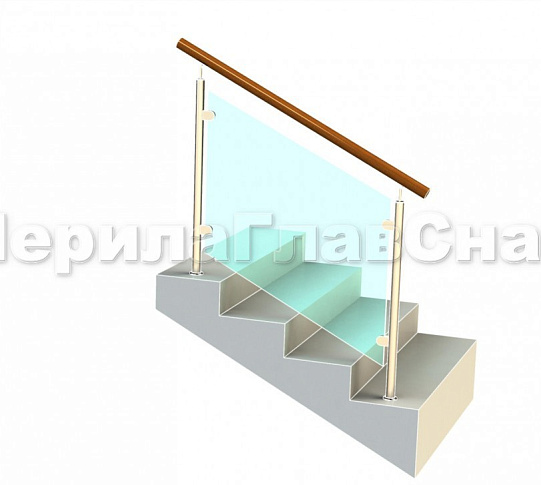 Ограждение с деревянным поручнем с зажимными стеклодержателями и стойками