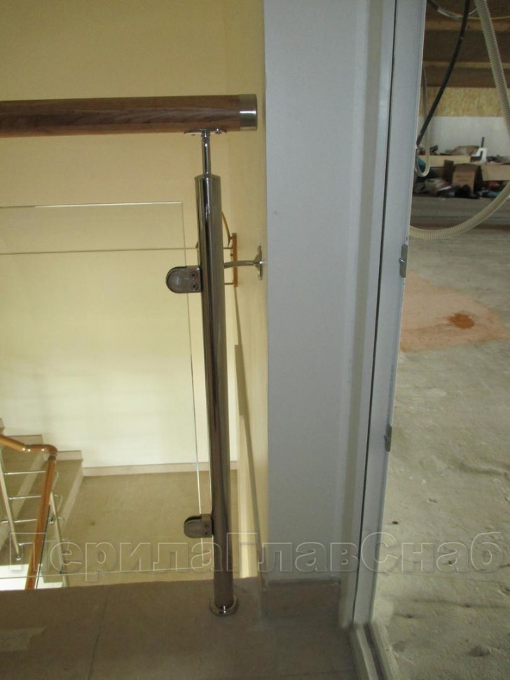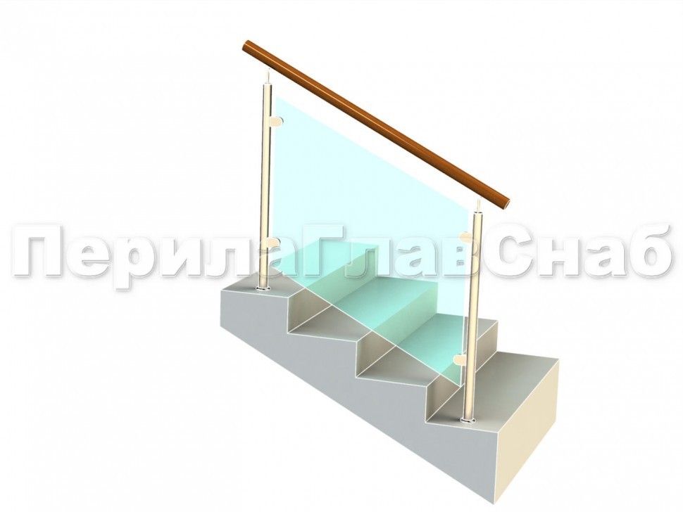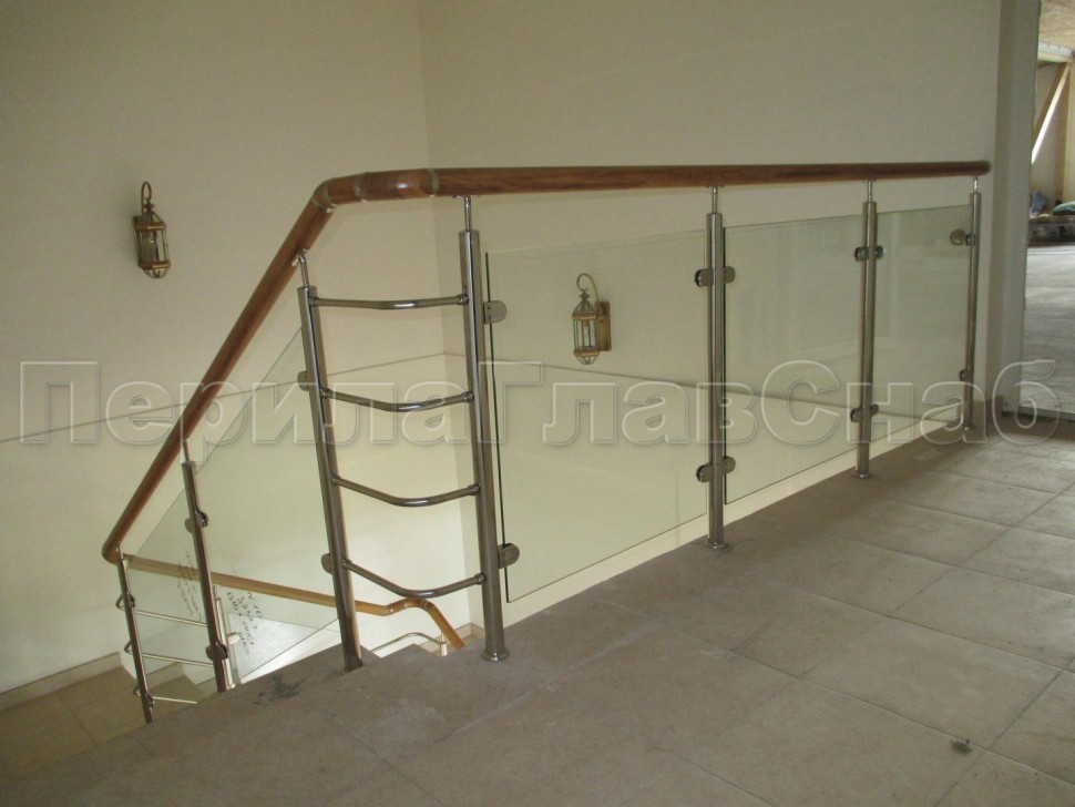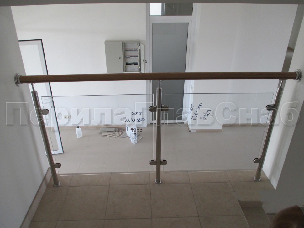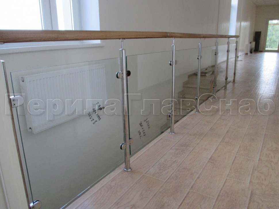 Ограждение с деревянным поручнем с зажимными стеклодержателями и стойками