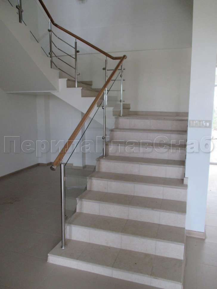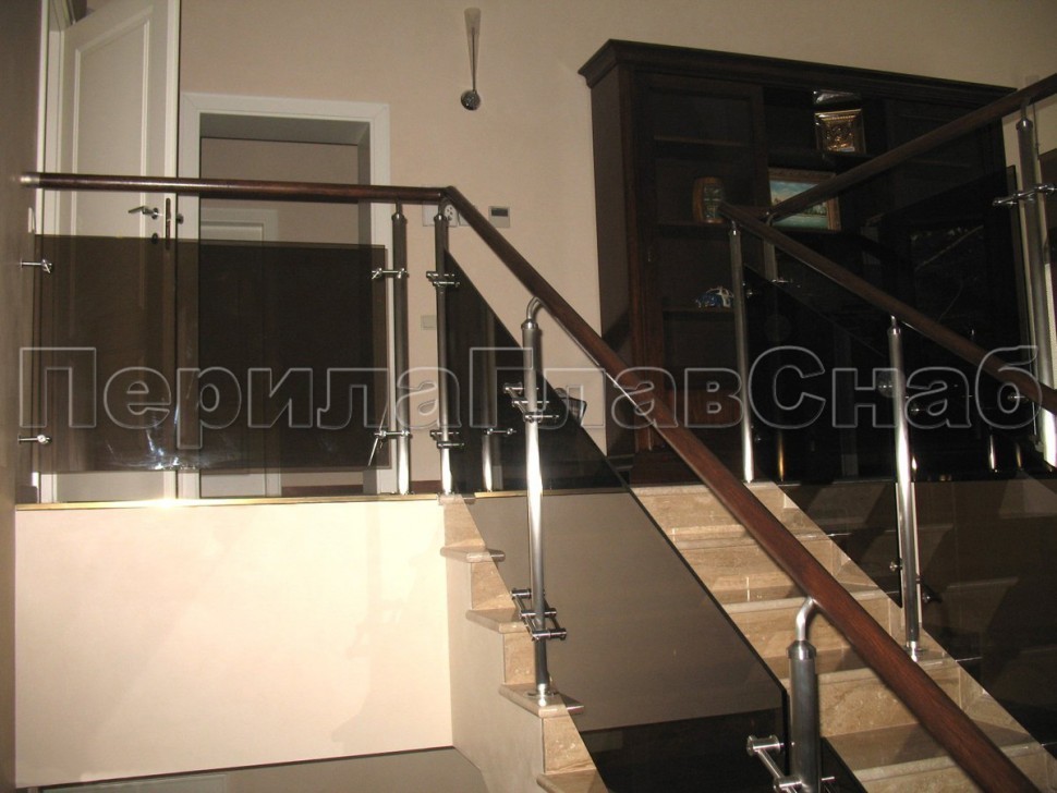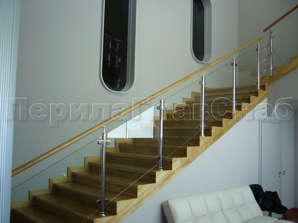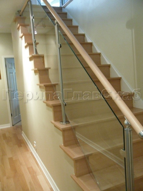 Ограждения лестницы без поручня с зажимными стеклодержателями и стойками