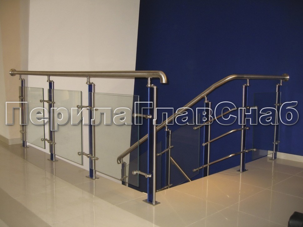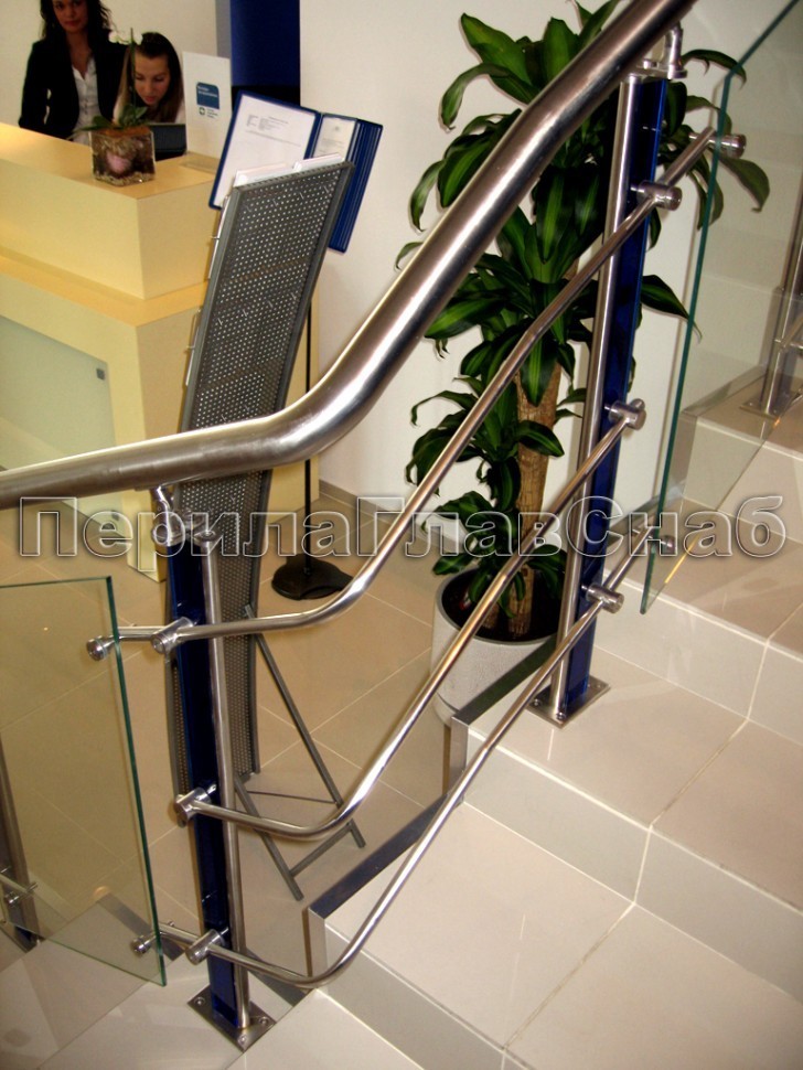 Ограждение для лестницы из нержавейки с зажимными стеклодержателями для крыльца
